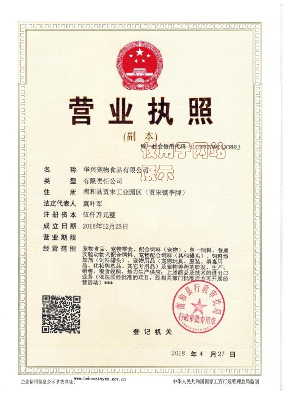 華興公司營(yíng)業(yè)執(zhí)照和生產(chǎn)許可證